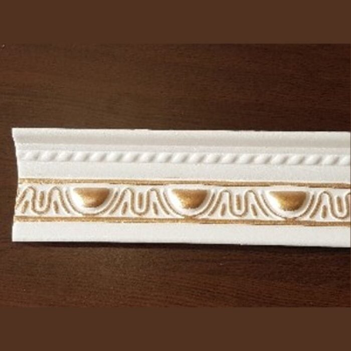 Διακοσμητική κορνίζα από φελιζόλ XPS / LD-M18 / Λευκό-Χρυσό / 2m x 80mm x 60mm