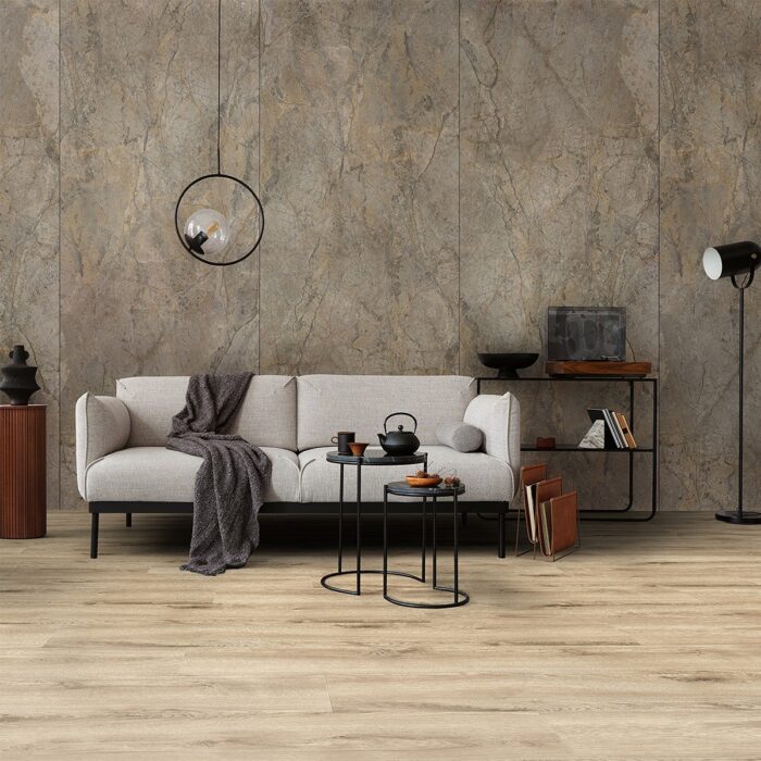 Stone Plastic Composite (ασβεστόλιθος + PVC).